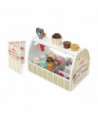 Scoop up some cool treats with this all-inclusive, 28-piece pretend play ice cream counter! The sturdy wooden tabletop counter holds eight wooden scoops of different-flavored ice cream, six assorted toppings, two cones, a plastic cup, an ice cream scooper, tongs, and a wooden spoon. The scooper fits into a hole on top of the scoops to lift, stack, and release. Take orders on the reusable menu card, pay with play money, and serve up delicious fun!