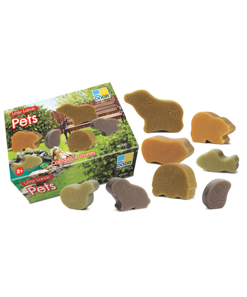 These charming and very cute pets are ready for some exciting play adventures! Ideally suited for little hands, they enhance small world play and provide lots of opportunities for talk, including how they should be cared for. They will inspire a wealth of stories and imaginative play. Why not create special homes for your favorite pets? Created from a durable stone mix, these animal figures are designed to be used in outdoor or messy play environments, and can be easily cleaned. Each set contains 8 pets: dog, cat, fish, guinea pig, hamster, rabbit, snake and turtle. Max length 2". Safe for 2+.