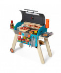 Fire up pretend play with this perfectly kid-sized wooden barbecue grill, smoker, and pizza oven play set! Pour pretend wood chips into the smoker box in the back of this lift-top grill. Budding young chefs three and older will love creating make-believe barbecue favorites like steak, chicken, burgers, hot dogs, corn -- and even play pizza! Place wooden play food "uncooked" side up on the grill, griddle, or side burner, set the built-in timer, pretend to baste, then flip with the included utensils to see grill marks! Create a yummy wooden pizza with toppings, then slide it from the pizza paddle onto the grill through the side pizza oven opening. Turn dials to raise and lower "flames," and press the removable thermometer into holes in the play food to check when food is "done." After mealtime, the more than 60 accessories and play food pieces all store neatly on the grill and storage shelf for easy clean-up. The Deluxe Grill & Pizza Oven Play Set promotes hand-eye coordination, sorting and counting skills, and imaginative play.