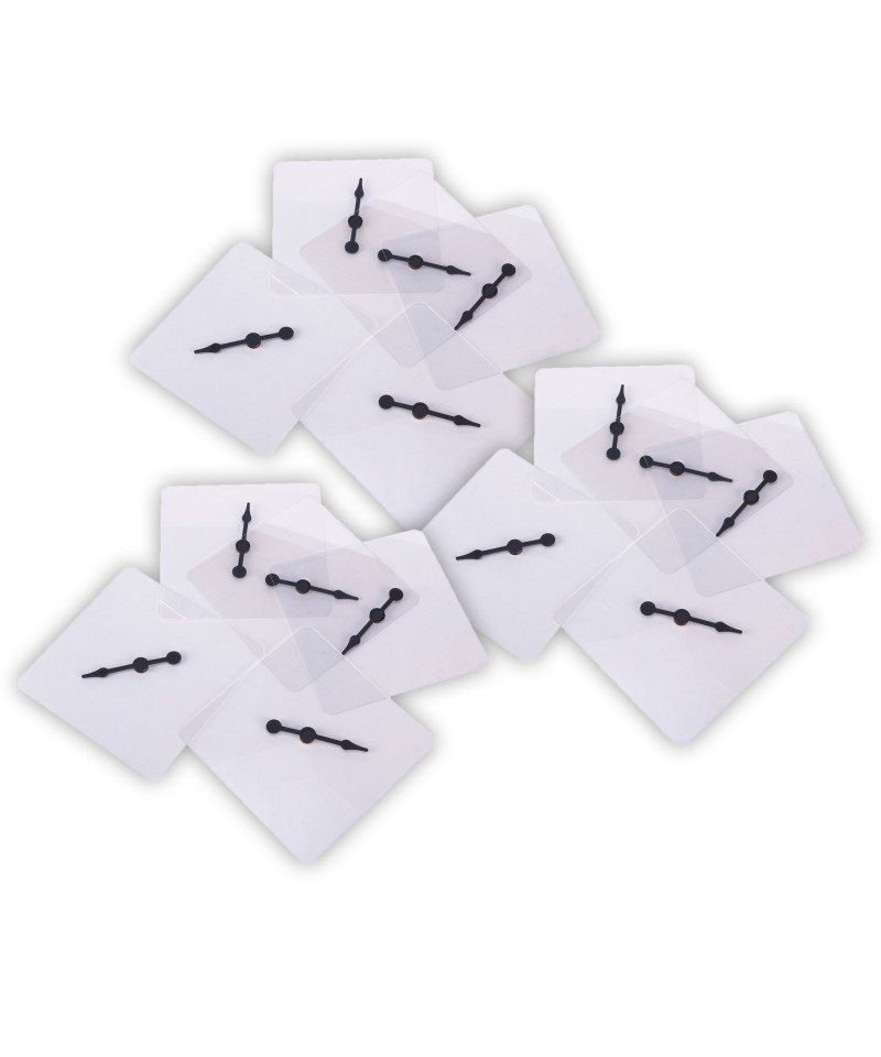 Blank, transparent spinners are easy to design with write-on/wipe-off markers or vis-a-vis pens. 4" square plastic with a free-spinning, plastic arrow spinner. Note: The spinners have a protective blue film on them to prevent scratching during shipping. Please remove the protective film before use. Each set includes 5 spinners. Sold as 3 sets for a total of 15 spinners.