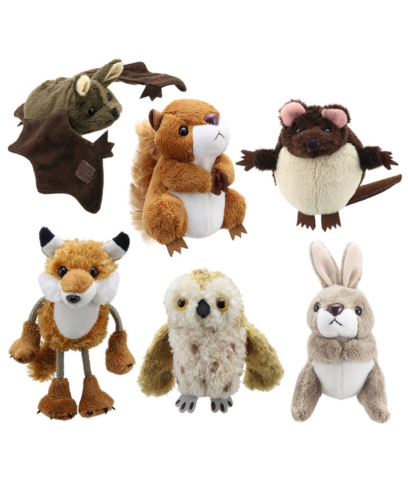 This Woodland Finger Puppet Set brings together a diverse collection of animals from some of our most popular designs. From the Charming red Squirrel, the fantastic Fox, wise Owl, Fury Brown Bat, Brown Mouse, and the Soft & Furry Grey Rabbit. Our finger puppets encourage communication and language development and help fine motor skills.
