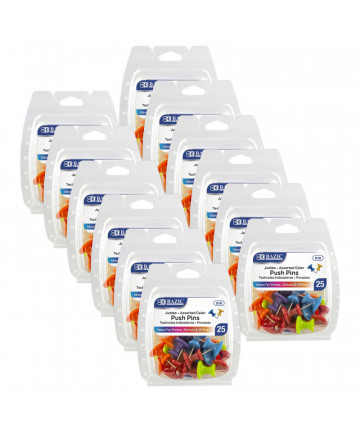 Excellent choice for use on bulletin or cork boards. Giant push pins are an easy way to add visual impact. Stylish design gives a better grip than the standard push pin. Reusable storage tub. Each pack includes 12 giant push pins. Sold as 6 packs for a total of 72 giant push pins.