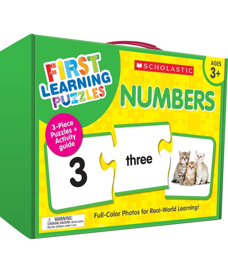Have fun learning numbers! This colorful set includes an activity guide and 25 self-checking, 3-piece puzzles designed to be used in two ways-as 2-piece puzzles and as 3-piece puzzles as children progress. Two sets in one! The puzzles and activities are designed to help children name and read whole numbers 1 to 25 and count up to 25. Includes (25) 3-piece puzzles (measures 9" x 3") and 2 page teacher's guide.