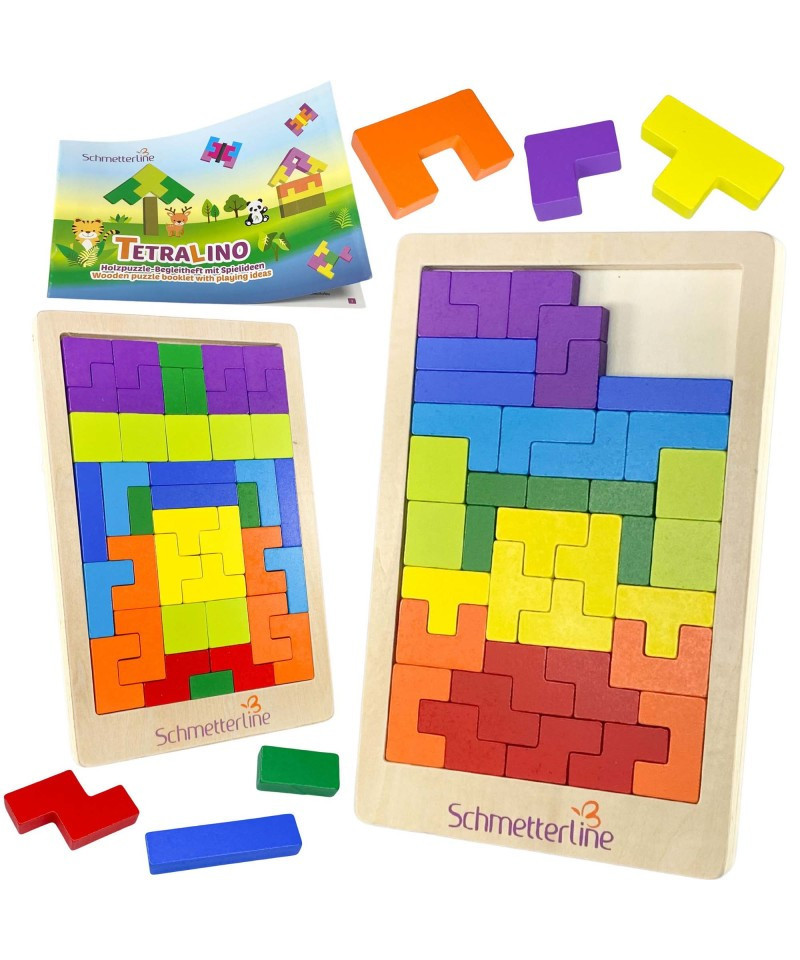 The Tetralino with extra-wide building blocks for 3D fun and high-quality board was carefully developed by holistic educators and are 100% plastic-free in a high-quality packaging - ideal as a gift! The wooden puzzle set contains two game boards with 88 building blocks including 8 spare parts in a sturdy gift box. Ideal for siblings, friends, the whole family, and for seniors as brain training! This educational brain teaser with an idea booklet promotes creativity, perseverance, and concentration in a child-friendly, colorful and simple Montessori style. An ideal wooden puzzle for preschool and as healthy entertainment at home - for toddlers and adults to have lots of FUN!
