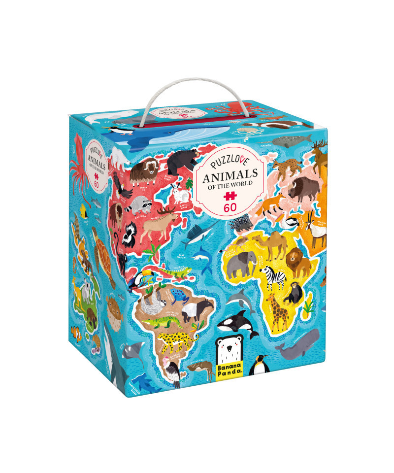 Large 19 x 27"educational jigsaw puzzle is a fun, hands-on way to discover and learn about animals, continents and geography from around the globe