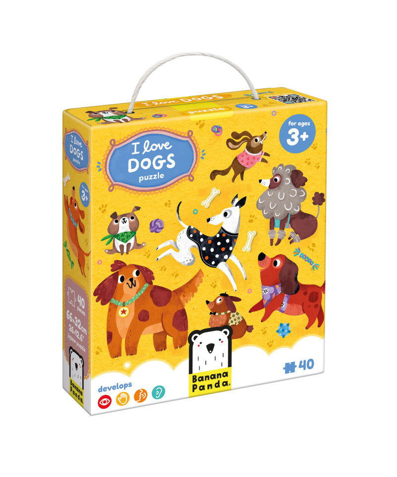Woof, woof, let's play with us, puppies!10 cheerful, friendly dogs and puppies invite you to a fun-filled adventure that will help you improve your observation skills, fine motor skills, and imagination. These large puzzles consist of 40 pieces. They are perfect as a first challenging puzzle for increasingly skilled puzzlers. This is a must-have in the room of young dog lovers!