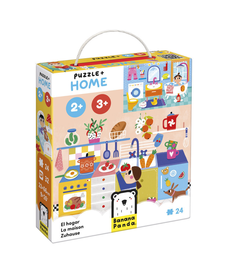 A fabulously colorful and large puzzle consists of 24 elements and presents 4 home rooms: a children's room, a bathroom, a living room and a kitchen. 32 selected items from each room are located on the added tiles. This allows for a lot of fascinating and comprehensively developing games, and you will find ideas for them in the guide included with the puzzle and elements. An educational set is a great gift idea for a smart toddler and preschooler.