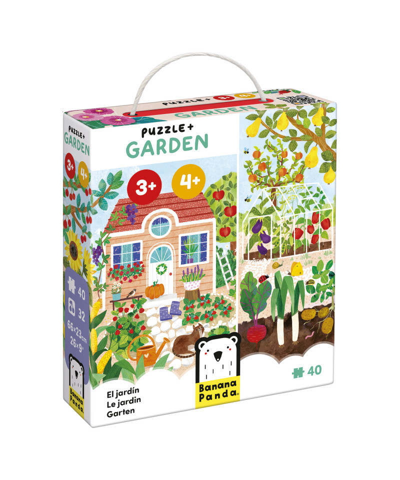 The brightly colored and large puzzle consists of 40 pieces and presents a blooming garden and orchard. 32 fruits and vegetables are located on additional tiles for adding. This allows for a lot of fascinating and comprehensively developing games that will help you better understand and remember what's growing in the garden. You will find a lot of interesting natural facts on the poster attached to the puzzle. The educational set will work well as a smart gift idea for a preschooler who is curious about the world.