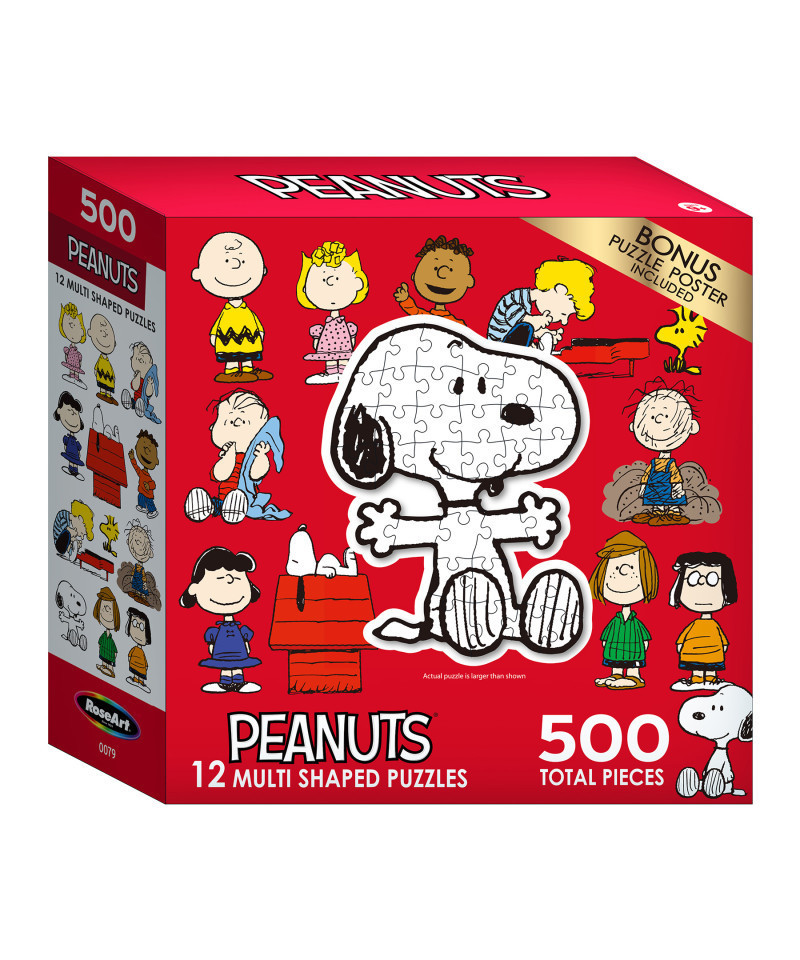 - 12 Mini Shaped Puzzles: Enjoy assembling 12 Peanuts-themed puzzles with a total of 500 pieces.