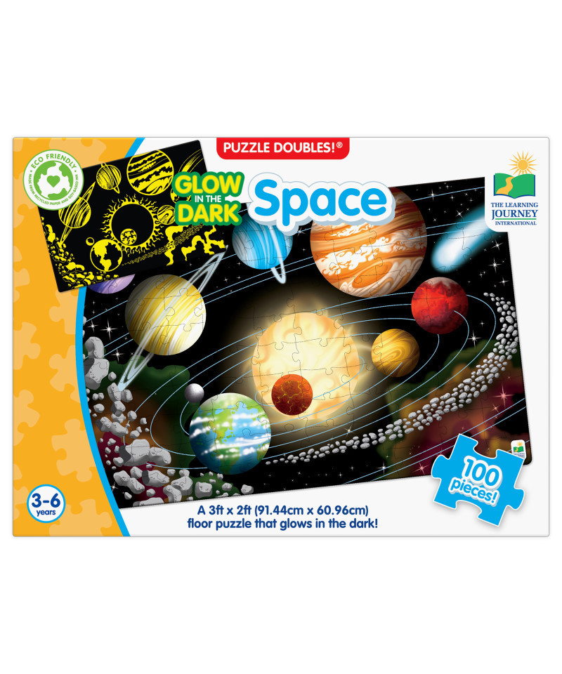 Learning about Outer Space has never been so much fun! After assembling the 100-piece puzzle, turn off the lights and watch it glow in the dark! Puzzle Doubles! Glow in the Dark! puzzles are a fun way to expand your knowledge of different environments and launch your little one's interest in the solar system. The puzzle measures a giant 3' x 2'! Ages 3+ years.