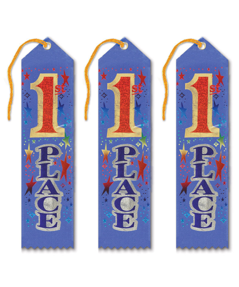 A great way to encourage participation, motivate players and get everyone in your group involved in your activity! Great awards the classroom, athletic events, art shows or friendly competition! Each ribbon has beautifully foiled graphics and is finished at the top with a card on the back for personalization and a string for hanging. Each pack includes 6 brightly colored first place ribbons. Each ribbon measures 2" x 8". Sold as 3 packs for a total of 18 ribbons.