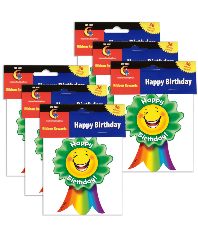 Colorful adhesive ribbons to help children feel important on their special day! Students will proudly wear these color ribbons all day long to celebrate. Parents will enjoy seeing students come home with their ribbon and be excited to hear about their day. Ribbons measures approximately 3" x 3.5". Each pack includes 36 acid-free, adhesive ribbons. Sold as 6 packs for a total of 216 ribbons.