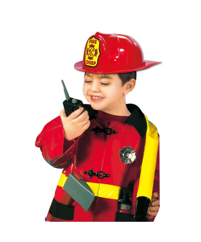 - Complete Firefighter Set – Includes coat, badge, fire hose, axe, walkie talkie, squirting fire extinguisher, and hard helmet.
