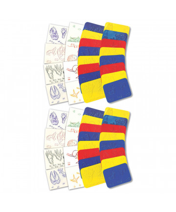Fun and easy-to-use rubbing plates are designed to artistically inspire children of all ages and abilities! Lay a sheet of paper over the plates and young children can scribble over the designs with crayons to reveal a simple shape with an interesting interior pattern. Older children can rub and repeat the patterns to create more complex designs and pictures. The tactile tracing paths around each perimeter allow visually impaired students to feel the shapes. Each pack includes 16 plates that are perfect for exploring shapes and patterns through touch. Plates measure 4" x 5.25" (10 x 13 cm). Includes teacher guide. Sold as 2 packs for a total of 32 plates.