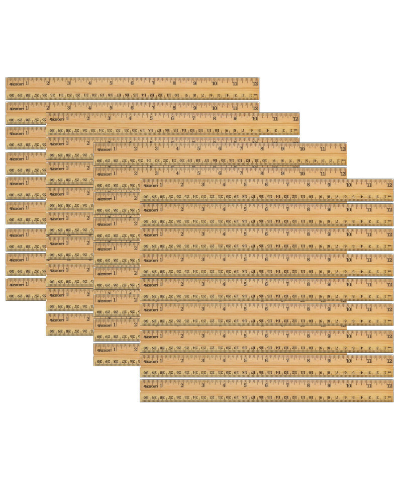 Westcott Drafting & Drawing Tools are some of the finest products of their kind for students and professionals. Our commitment to meticulous quality and cutting edge innovation in measurement and art materials has earned an unparalleled reputation. Westcott® 12" Wood Ruler features a 1/16" scale on one edge, and Metric scale on the other. Select wood ruler with a sturdy metal edge. Sold as a pack of 36.