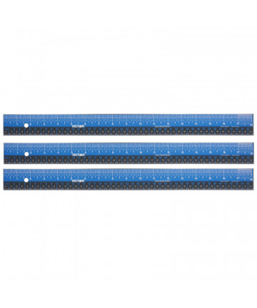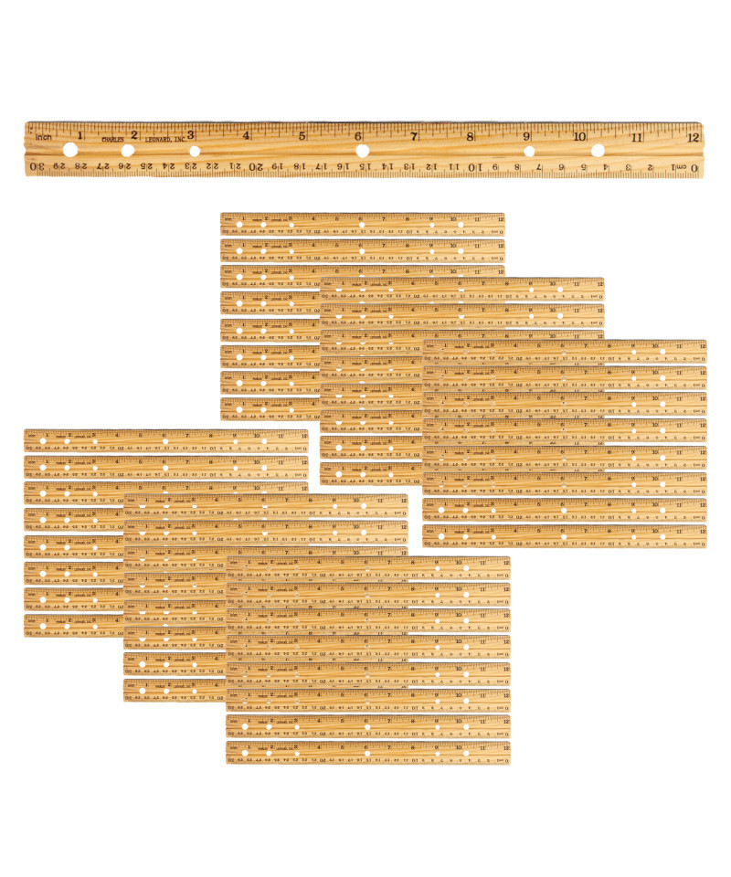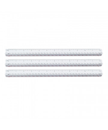 Made of selected wood, complete with pencil groove and single metal edge. 1.13" wide and 0.16" thick. Double bevel ruler has a natural finish. Shows 1/16 inches on one edge, millimeters on the other. Sold as a pack of 48 rulers.