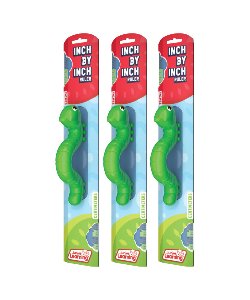 Discover the world of measurement with the Inch by Inch Ruler. This transparent blue ruler is designed specifically for educational use and is ambidextrous, making it versatile for both right and left-handed users. It measures up to 12 inches or 30 centimeters and comes with a convenient hole for easy storage. A fun, green caterpillar handle that's perfect for little hands adds to the engagement factor. Dive into the realms of inches and centimeters in a playful yet practical way! Sold as a pack of 3 rulers.