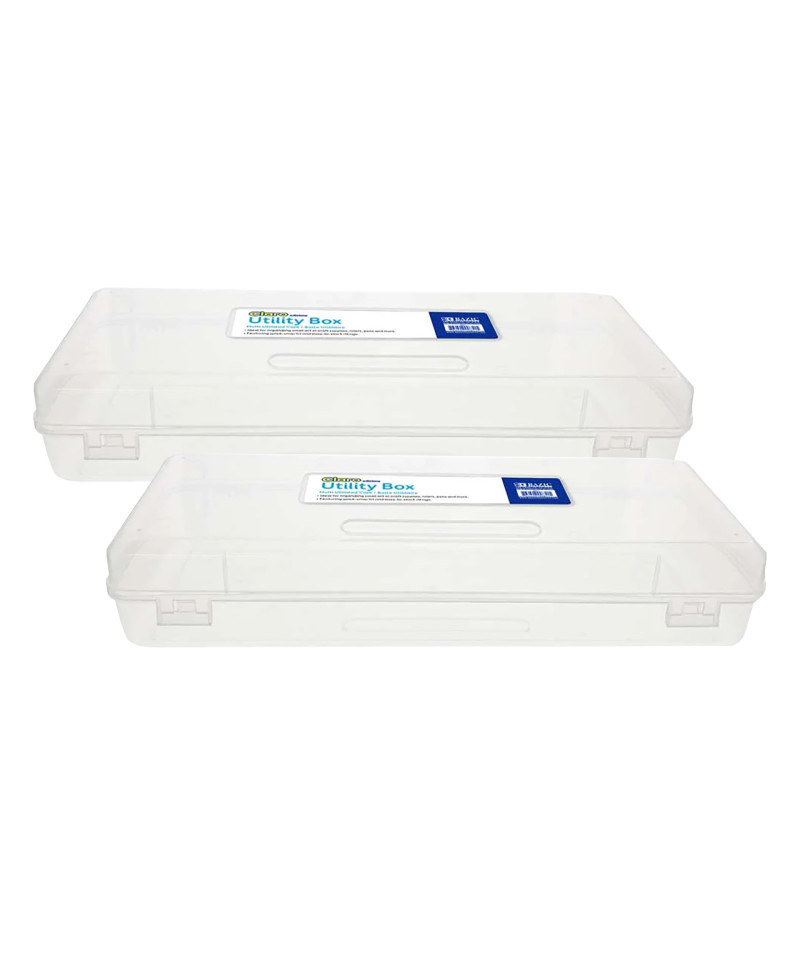 Keep your supplies organized and your workspace clutter-free with these ruler-length utility boxes, designed for ultimate functionality and convenience. Measuring 13.25″ x 4.75″ x 2.5″, each box is made from BPA-free, non-toxic PP plastic and features a secure snap-lid closure for easy access and safe storage. The stackable lid design allows for neat vertical organization, saving valuable space whether you're storing them in a drawer, backpack, or on a shelf. With a transparent finish, you can easily see what's inside without opening the box—ideal for students, teachers, crafters, or professionals. Perfect for storing school supplies, art tools, and small everyday essentials, these boxes make organization simple and stylish. Sold as a pack of 2.