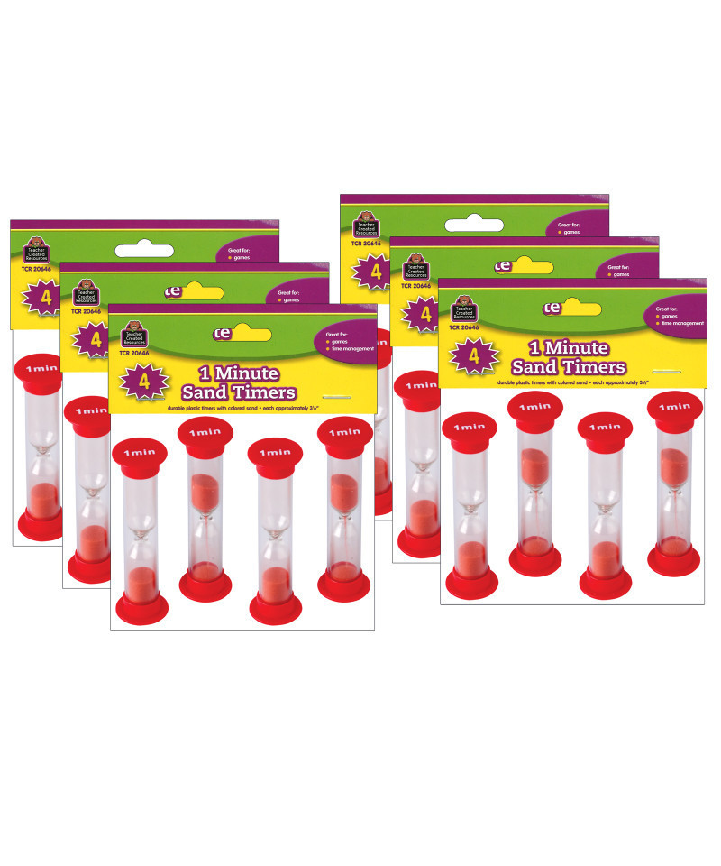 Teacher Created Resources® Sand Timers, Small, 1 Minute, 4 Per Pack, 6 Packs