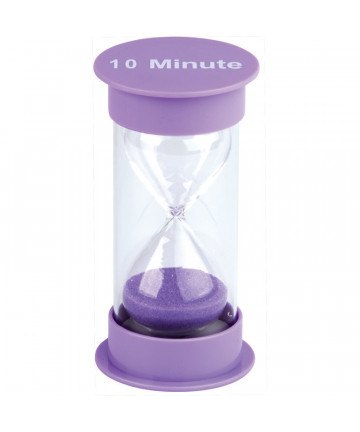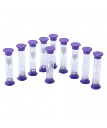 Each kids visual timer is color coded and is clearly labeled to make it easy to tell our Jumbo Sand Timers apart. The blue timer is 1 minute sand timers, the green is a 2 minute timers, the orange is a 5 minute timer, and the purple is a 10 minute hourglass timer. These are the perfect shower timer for kids, study timer, calm down corner, show and tell, yoga, gym time, potty training timer, and time out timer. These hourglass timers are not precision timing devices, so there may be some time deviation. This set includes 4 jumbo sand timers (1 minute sand timer, 2 minute sand timer, 5 minute sand timer, and 10 minute sand timer).