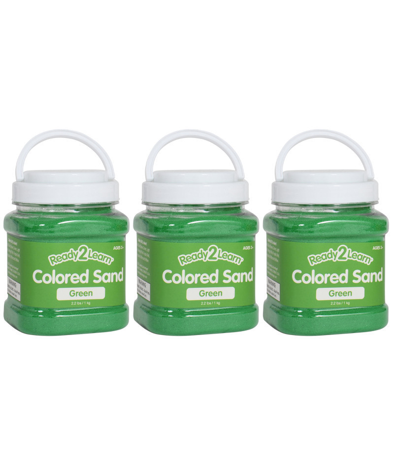 - COLORED SAND FOR KIDS -- Sold as a pack of 3 jars, each jar contains 2.2 lbs of decorative, fine-grain green sand. Colored sand is a versatile addition to any crafting supply collection or sensory bin.