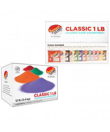 Unleash your creativity with Scenic Sand™ Craft Colored Sand in Deep Black! This fine-grain decorative sand is perfect for sand paintings, mosaics, and art projects. Whether you're crafting home décor, designing jewelry, or embellishing paper mache, wood, and other surfaces, this richly pigmented sand adds an elegant, bold touch. It's also great for wedding unity ceremonies, sensory play, and children's sandboxes. With a full range of 20 vibrant colors, you can mix and match for endless artistic possibilities. Scenic Sand™ is easy to use, fun, and adds a unique texture to any craft or décor project.