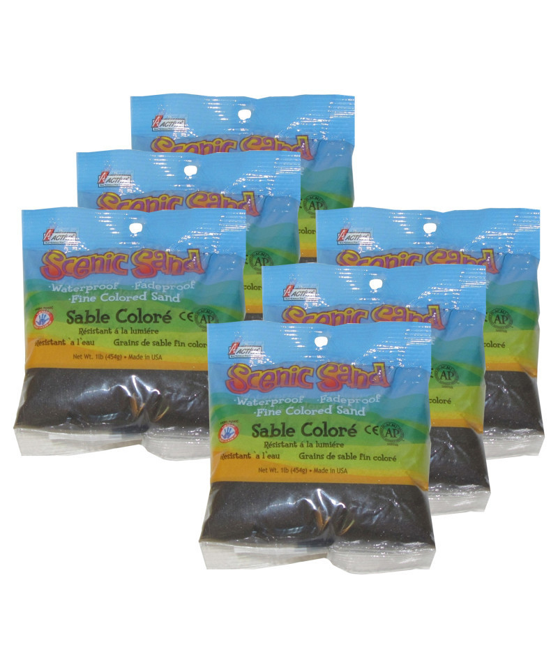 Unleash your creativity with Scenic Sand™ Craft Colored Sand in Deep Black! This fine-grain decorative sand is perfect for sand paintings, mosaics, and art projects. Whether you're crafting home décor, designing jewelry, or embellishing paper mache, wood, and other surfaces, this richly pigmented sand adds an elegant, bold touch. It's also great for wedding unity ceremonies, sensory play, and children's sandboxes. With a full range of 20 vibrant colors, you can mix and match for endless artistic possibilities. Scenic Sand™ is easy to use, fun, and adds a unique texture to any craft or décor project. Sold as a pack of 6.
