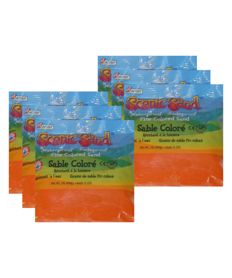 ACTÍVA Scenic Sand™ Craft Colored Sand, Orange, 1lb (454g) Bag, Pack of 6