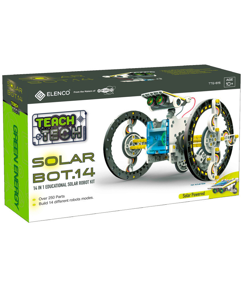 Every hour more solar energy reaches the Earth than humans use in an entire year. Solar panels, or photovoltaic panels, convert the sun's energy into usable electricity. Solar Power is one of the alternative energies used most widely across the globe. Your Solarbot.14 kit contains unique components & parts to construct robots that operate on land and water. Construct 14 different solar powered robots from functional to comical designs. After assembling a model, the user can easily reassemble components into different models. These robots are powered by direct sunlight.