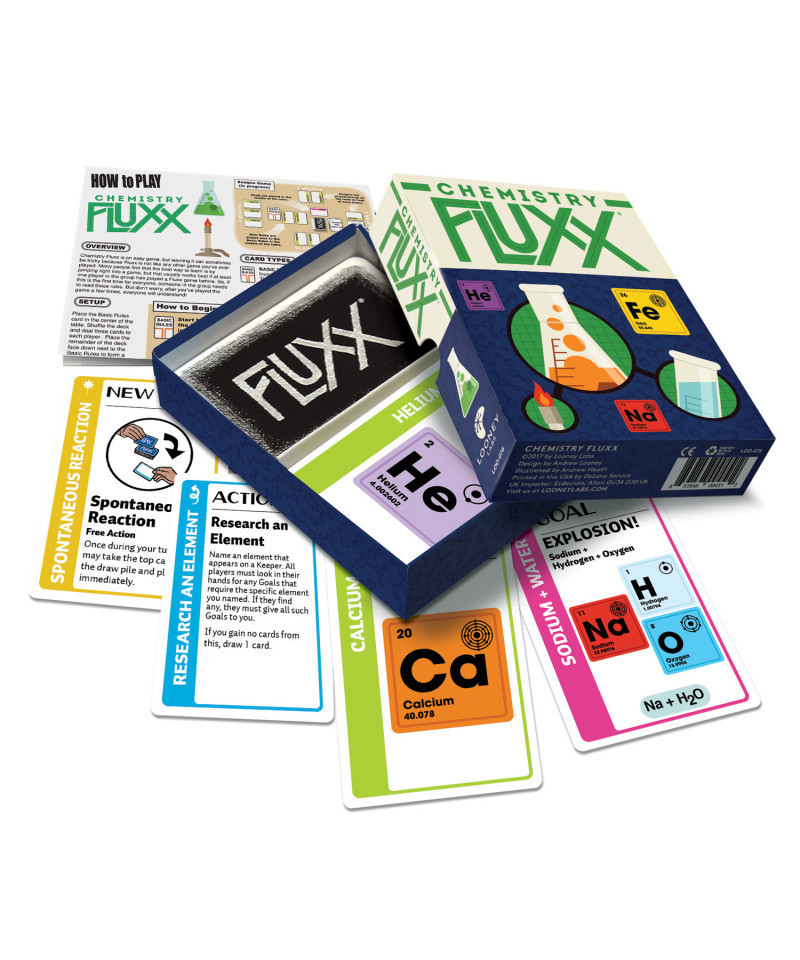 Collect elements of the periodic table to form common compounds such as water, salt, sugar, rust, sand, and more. Learn the makeup of atoms that form the sun or metals such as cast iron. And take advantage of the Helium Effect bonus if you remember to talk in a high pitch when you play the helium Keeper! This basic introduction to chemistry requires no previous knowledge to play. For 2-6 players, ages 8 and up.