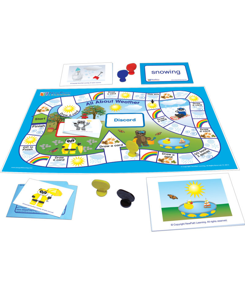 Introduce students to weather and seasons with engaging, game-based activities. Students will learn and identify the seasons, as well as various weather conditions such as windy, sunny, rainy, cloudy, foggy and others. Packaged in a durable pouch, the game can be used in the classroom, after school programs or home practice and are perfect for differentiated instruction. Designed for either teacher-directed or independent play in groups of 2-4 students, each game includes a Laminated, Hands-On Board game with 30 illustrated, self-checking cards and game materials for up to 4 students; two sets of 30 Flash Cards printed on heavy 4" x 5.5" stock, providing matching activities to challenge students to correlate up to 3 associated attributes; and a Teacher's Guide with step-by-step instructions as well as recommended, additional skill-building activities.