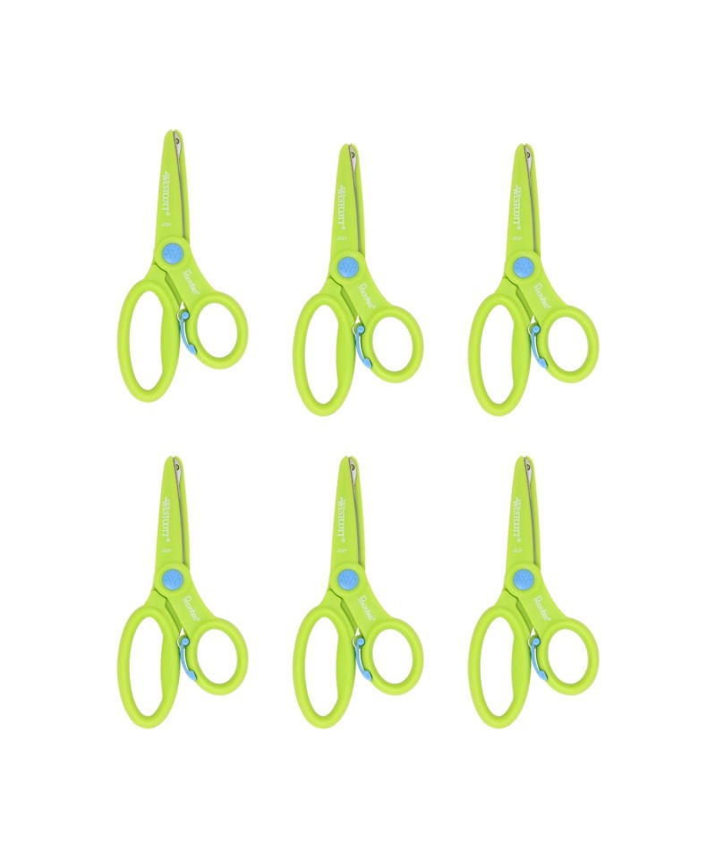 5" Preschool Spring Assist Scissors available in blue and green. Preschool safety scissors measure 5in and are ideal for children in the age group of 3 years or above. Scissors are spring assisted. Handles contain an antimicrobial agent to help inhibit the growth of bacterial stains and odors. Scissor usage aids in the development of hand-eye coordination and dexterity skills. Sold as a pack of 6 in assorted colors (no color choice).