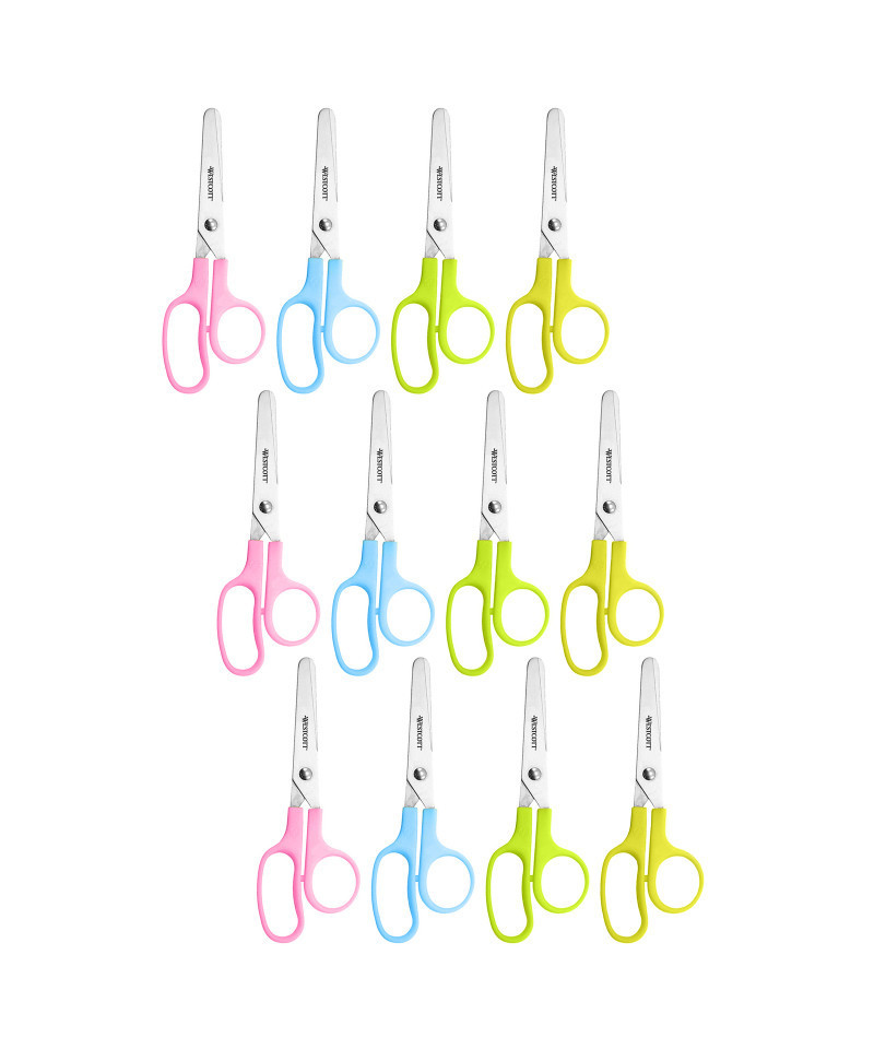 Westcott has provided the world with innovative and well designed products for over a century... at affordable prices, without sacrificing quality. Westcott is dedicated to supporting education and inspiring creative activities in the classroom and at home. Products are specifically designed for growing students, created to be fun and functional with superior quality and exceptional value. Westcott Kleencut 5" Kids Blunt Scissors are light and durable, featuring stainless steel blades. For left or right-handed users. Sold as a pack of 12 in assorted colors (no color choice).
