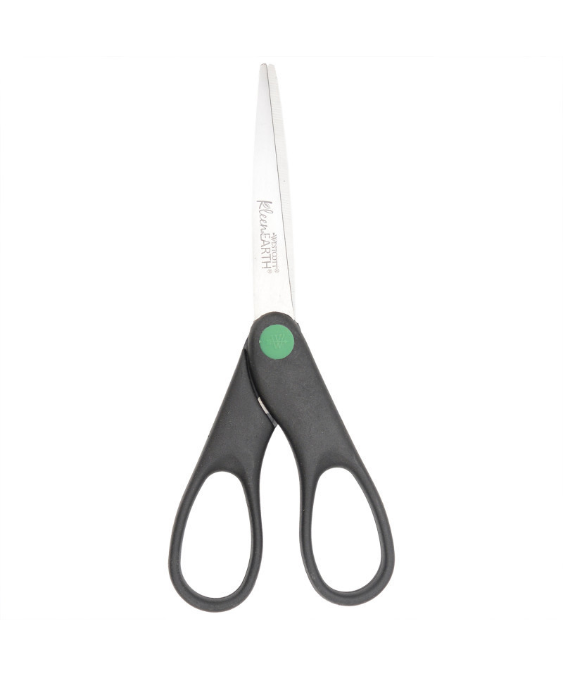 The KleenEarth® Stainless Steel Scissors by Westcott are a smart, eco-conscious choice for everyday cutting at home, work, or school. Made with durable stainless steel blades and a straight black handle crafted from recycled plastic, these scissors combine reliable performance with a more sustainable material choice. The 7-inch length and 2.75-inch cutting blade offer comfortable control for common tasks like cutting paper, worksheets, packaging, and light craft materials.Designed for daily use, these scissors provide clean, smooth cuts while remaining lightweight and easy to handle. The simple black design fits seamlessly into home offices, desks, backpacks, and supply drawers. Whether you’re tackling household projects, organizing paperwork, or helping with homework, KleenEarth scissors deliver dependable cutting power while supporting environmentally responsible choices.