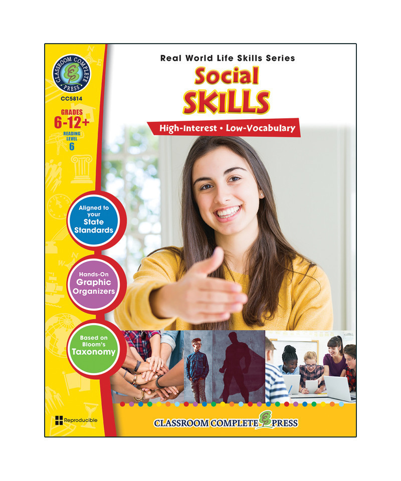 The process of learning social skills is imperative as one moves to and grows throughout adulthood. Identify good and bad traits while fostering relationships for life-long friends. Become self-reliant by learning independence and responsibility with tips on how to say no. Attain personal development by plotting your steps to help you reach your goals. Achieve personal and workplace accountability with proper behavior when hearing criticism. Have an open mindset when collaborating and get help breaking bad habits with a 30-day challenge. Students learn how to be polite and kind to others with the proper etiquette. Comprised of reading passages, graphic organizers, real-world activities, crossword, word search and comprehension quiz, our resource combines high interest concepts with low vocabulary to ensure all learners comprehend the essential skills required in life. All of our content is reproducible and aligned to your State Standards and are written to Bloom's Taxonomy.