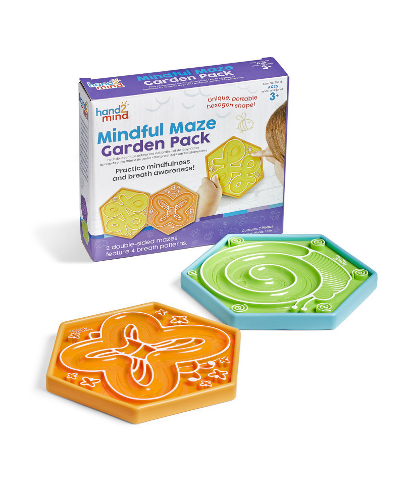 This set extends our best-selling Mindful Maze Set by incorporating a nature theme in a smaller maze. Children learn different breathing techniques that encourage mindfulness and help develop self-management skills. 2 double-sided boards cover 4 breathing patterns.