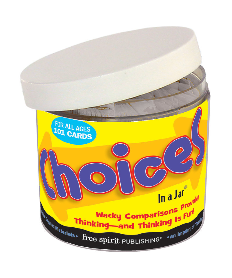 What's your choice—to have to walk on stilts the rest of your life, or to always have to roller skate to get around? To have no short-term memory, or no long-term memory? To not eat for two days, or to not sleep for two days? Choice provokes thinking, and thinking is fun. Each card presents a delightful dilemma—sometimes unusual, always challenging—to spark conversation or controversy. Change your choice and change your mind. All ages, 101 cards, 3" recyclable plastic screwtop jar. With unique, engaging topics for varying ages, these go-anywhere, easy-to-use jars make learning fun, portable, and spontaneous. Kids, parents, and educators will enjoy the games and cards at home, at school, at childcare, in the office, while traveling, at parties, in youth groups, and at camp.