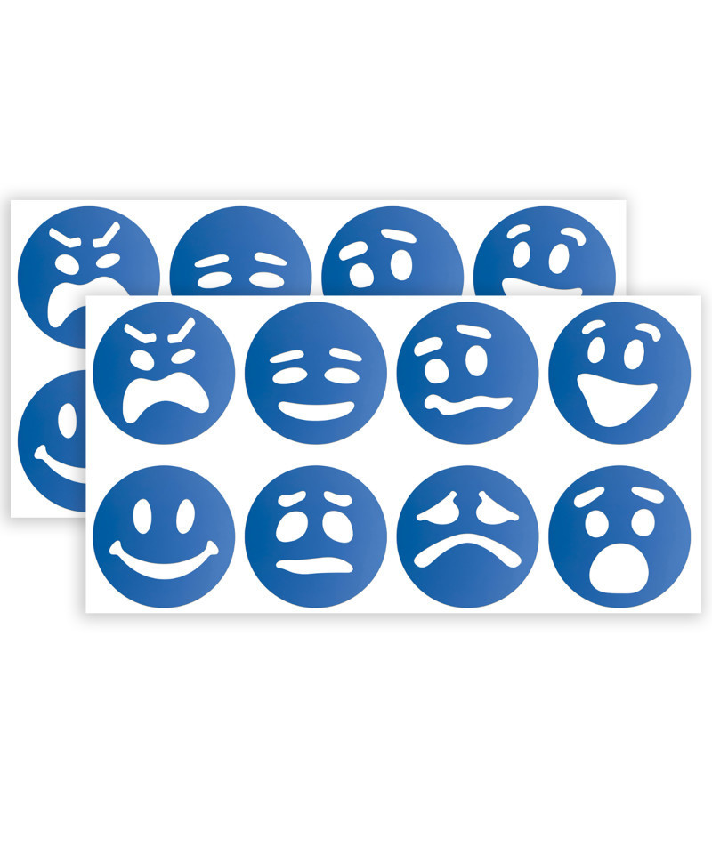 - Sold as 2 packs for a total of 16 stencils, each pack includes 8 emotion token stencils, 4" (10cm) diameter.