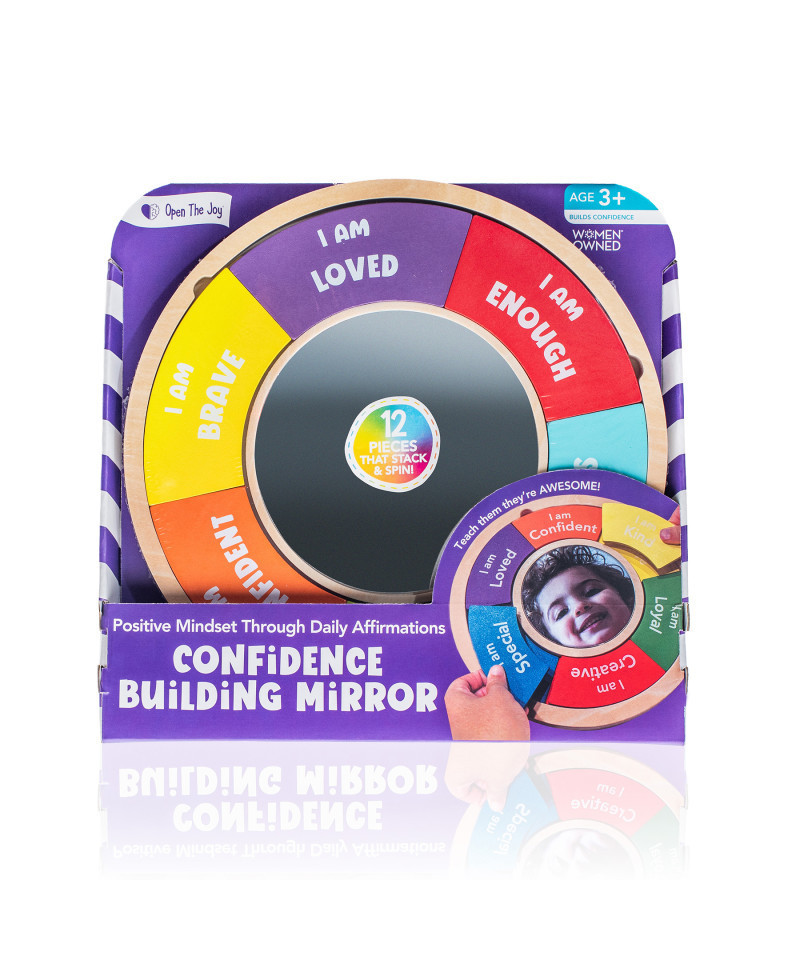 Empower your child with Open The Joy's Confidence Building Mirror, a revolutionary toy designed to boost self-esteem and positive thinking. Featuring a sturdy, all-in-one storage base, the mirror comes with 12 empowering affirmations that children can mix, match, and arrange to craft their personal mantra. From "I am brave" to "I am loved," each statement encourages kids to recognize and celebrate their inner strengths and qualities. Perfect for children aged 3 and up, the Confidence Building Mirror allows children to choose the words that shape their thoughts and attitudes, making the practice of positive thinking both tangible and fun. Encourage your child to stand in front of their reflection each morning, read their personalized mantra aloud, and start the day with a heart full of confidence—because every child deserves to look in the mirror and see someone incredible looking back.