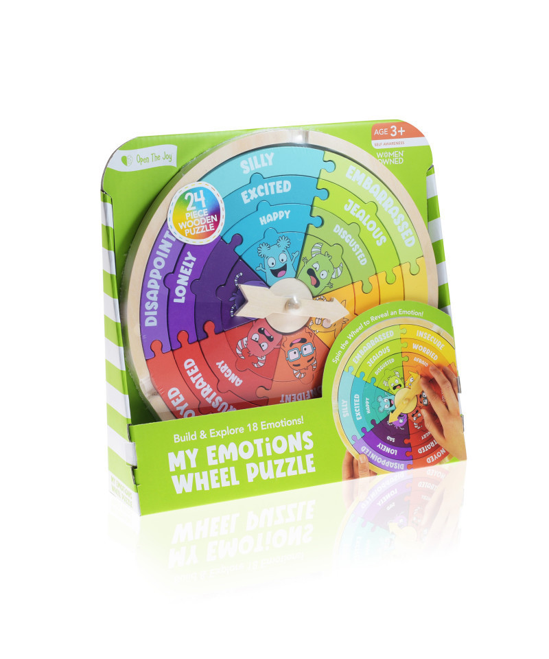 Turn learning about feelings into a fun, hands-on adventure with Open The Joy's My Emotions Wheel Puzzle! Thoughtfully designed by child development experts, this beautifully crafted wooden learning toy combines emotional exploration with interactive play. The set includes 24 colorful wooden pieces, a sturdy storage base, and 3 exciting bonus games, offering kids endless opportunities to build, spin, twist, and learn. Featuring 18 emotion words and 6 expressive characters, this all-in-one puzzle, spinner, and twisting track helps children recognize and express their feelings in healthy, age-appropriate ways. Perfect for preschoolers and early learners, the My Emotions Wheel Puzzle strengthens fine motor skills, problem-solving, and emotional intelligence—all through the joy of play. A must-have for classrooms, therapy rooms, or playrooms, this durable, screen-free activity transforms emotional learning into hours of creative, educational fun.