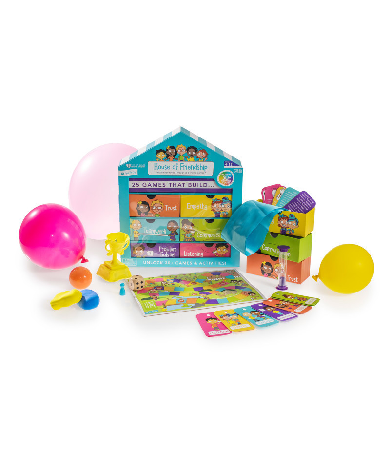 Welcome to Open The Joy's House of Friendship, where fun, teamwork, and laughter come together in one unforgettable adventure! This interactive friendship game set transforms playtime into a meaningful experience filled with cooperative challenges, mystery surprises, and engaging mini-games that celebrate the true meaning of friendship. Each colorful space on the game board reveals a surprise item and an activity designed to highlight important social skills such as empathy, communication, and cooperation. With 25 unique bonding games, children learn how to be kind, inclusive, and supportive while working together to complete fun challenges. Packaged in a whimsical, house-shaped box that doubles as a DIY playhouse or memory box, the House of Friendship makes the perfect addition to any classroom, family game night, or playdate. 100% screen-free and full of heart, this kit inspires creativity, strengthens social-emotional learning, and helps children build lasting connections through play.