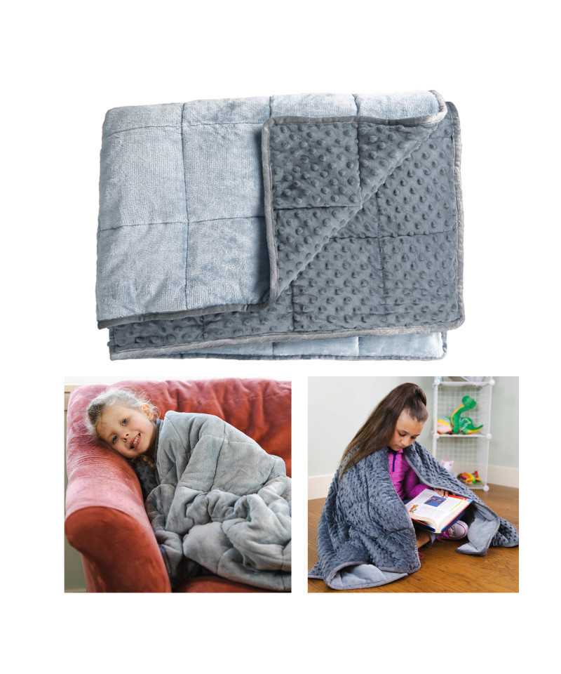 - INCREASE FOCUS: Reversible 2 color blanket with soft nubs on one side and silky smooth plush on the other combine with even weight distribution to help children concentrate