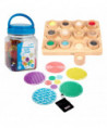 The Sensory Tactile Kit includes a Set of 72 Transparent Tactile Shells, a Touch & Match Board, and a Set of 10 SiliShapes Sensory Circles.