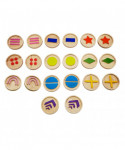 This set includes 10 pairs of wooden disks with different patterns. Each colored pattern is grooved for tactile exploration. Discover different shapes, lines and designs. Or, use them to practice early math concepts like counting, sorting and sequencing. These chunky disks are great for loose parts play, and they’re perfect for small hands to grasp. Each disk is made from smooth, durable beechwood. They’re designed to last for years of home or classroom use. Use the drawstring cotton bag for easy storage and portability. For ages 2+. Size of disk: 2" dia.