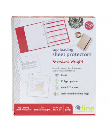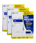 No-Hole Sheet Protectors offer the extra document storage durability of traditional heavyweight sheet protectors, but without the three-hole punched binding strip. Use by themselves to post signs or protect frequently-used materials, or to subdivide files and folders. Acid-free polypropylene means no photocopy transfer. For 11" x 8 1/2" documents. Clear. Each box includes 25 sheet protectors. Sold as 3 boxes for a total of 75 sheet protectors.