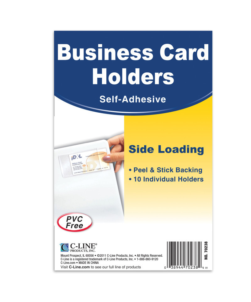 Use to identify ownership of software or policy manuals and reference books, simple to use. Attach your business cards to proposals, presentations and reports. Just attach self-adhesive holder and insert business card. Measures 2" x 3-1/2". Each pack includes 10 card holders.