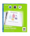 These sheet protectors hold 11" x 8.5" paper sheets and have a thickness of 0.05mm. They offer premium protection, providing maximum performance. Designed for durability and frequent daily use at home, school, and the office, these sheet protectors allow documents to be inserted from the top for quick adding or removing. Their clear design offers complete transparency, perfect for showcasing and making presentations appear bold and bright. They consist of 11 pre-punched holes which fit into various types of ring binders. The non-stick and clear poly sheet protectors safeguard portfolios, projects, receipts, classwork, or any business need. They are great for organizing reports, manuals, medical records, financial documents, and presentations. They are made of thick and durable PVC-free polypropylene. The waterproof plastic page protector preserves papers from wear and tear, providing a clean and professional look.