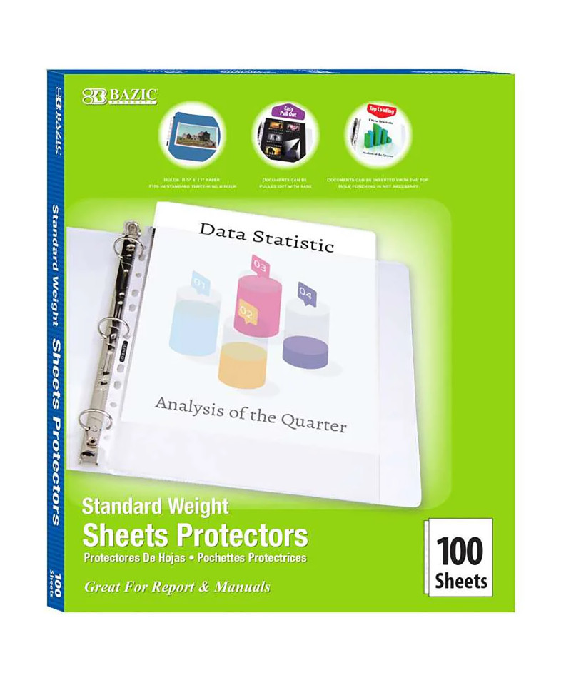 - MULTI USE. Consists of 11 pre-punched holes which fits into various types of ring binders. Non-stick and clear poly sheet protectors protects portfolio, projects, receipts, class work, or any business need.