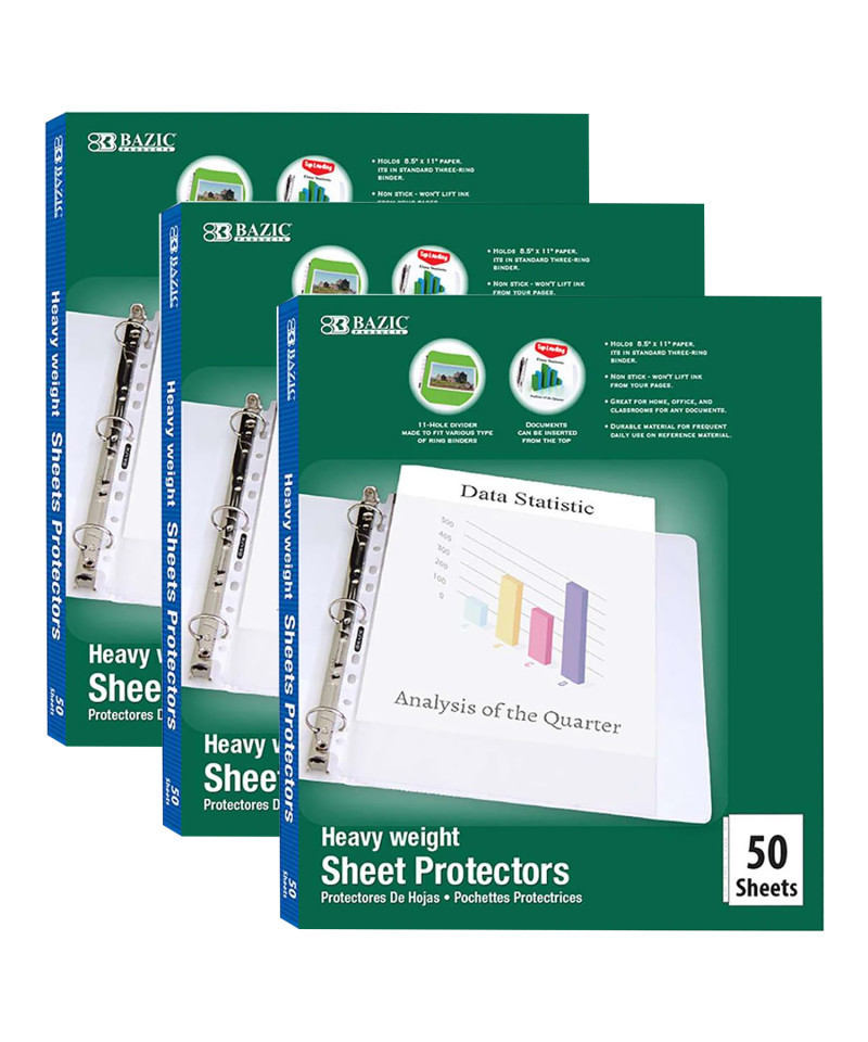 - MULTI-PACK: Each pack includes 50 sheet protectors. Sold as 3 packs for a total of 150 sheet protectors.