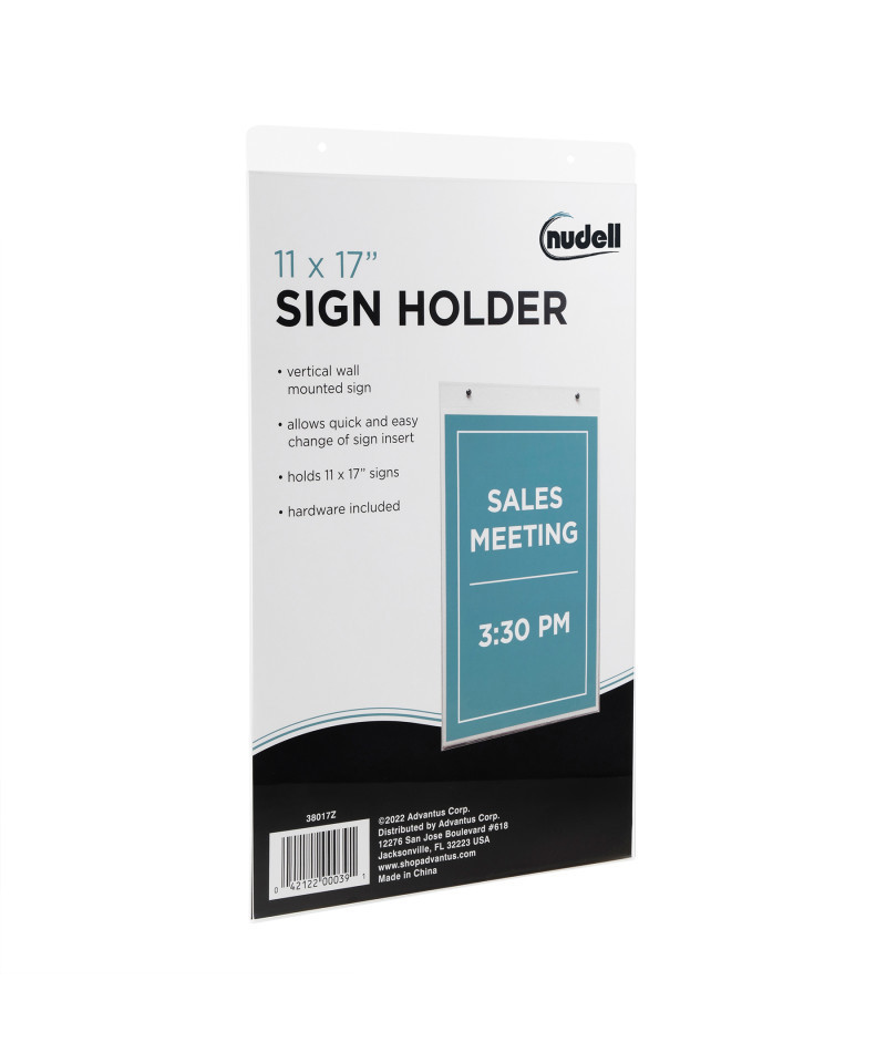Create signage or messaging display wherever necessary with these easy-to-install portrait wall mount sign holders. Nudell wall mount sign holders are ideal for pictures signs, employee/customer notices or other postings. The wall-mounted display lets you quickly and easily change your insert for more effective messaging. Use pre-drilled holes and included hardware to secure to wall.